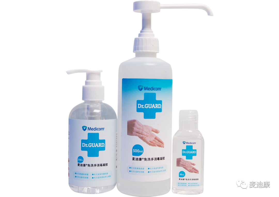 作为感控领域的领导品牌,为了应对疫情,帮助医务人员和普通人群做好手卫生,麦迪康推出了Dr.GUARD免洗手消毒凝胶。