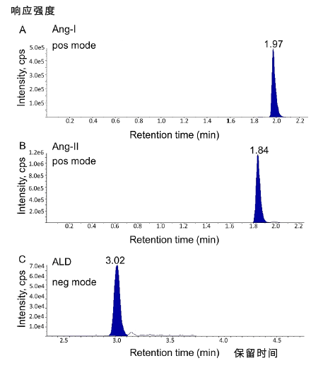 但是醛固酮、肾素活性、血管紧张素II这三种物质,在结构以及性质上存在较大差异,血管紧张素I和II属于多肽大分子物质,而醛固酮属于小分子类固醇激素类,所以目前大部分实验室都是进行分开检测,需要进行三次前处理,三次上机检测,所需患者样本量多,分析周期长,并且增加了分析人员的重复工作,最终延长了出具检测报告的时间;另外一方面,由于多次分别检测过程中可能引入的未知误差,会增加对ARR检测结果的可控性,可能会影响报告的精准性。